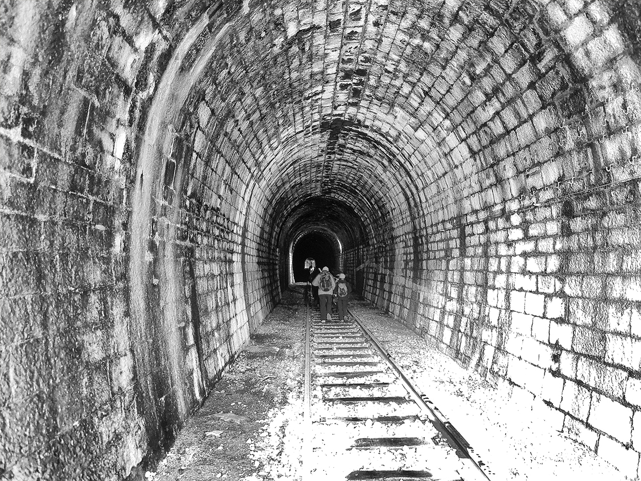 Solo 2,5 kilometri, ma molto interessanti; è la prima volta che passo a piedi sotto tre gallerie e sopra i ponti ferroviari costruiti più di cento anni fa. E’ emozionante poggiare i piedi sulle traversine, immaginare le gallerie piene di fumo della locomotiva che, ansimando, saliva fino lì. Immagino i passeggeri: composti avvocati o contadini che portano le loro mercanzie al mercato: uova, galline, ortaggi.