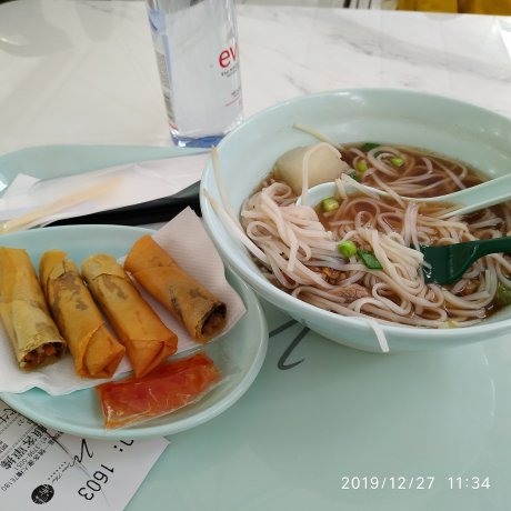 Ci mettono dietro un lungo tavolo di cui sono disposte zuppiere di metallo con dentro riso, legumi, frutta e biscotti.