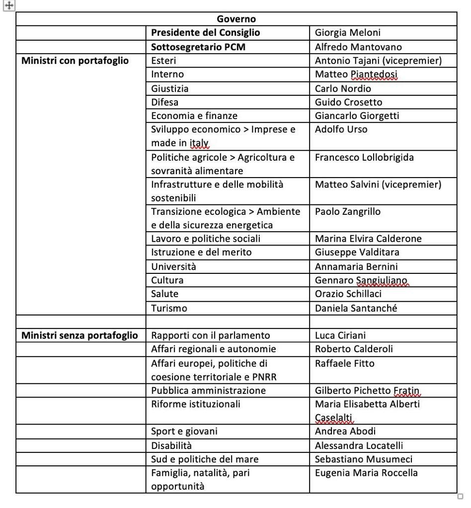 E va bene, la Meloni de la Garbatella ce l’ha fatta https://youtu.be/EZ4mEq3x6wY Ha il suo Governo. Ho qui davanti la lista dei ministri e cerco di capirci qualcosa.