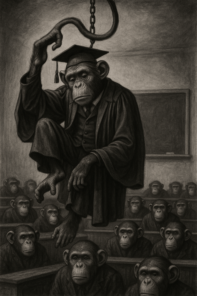Con queste parole il professor Cornelius salutò gli studenti con il gesto rituale di grattarsi la testa con il pollice opponibile del piede ed aggrappandosi al trapezio con la coda prensile.