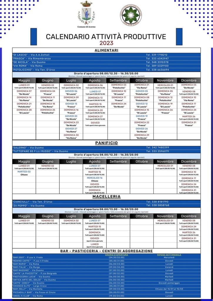 Acerno è così. Almeno sulla carta è ben organizzato. Sul sito di Facebook del Comune sono ben evidenziati, per tutto l’anno, i giorni di apertura festiva dei negozi di beni essenziali