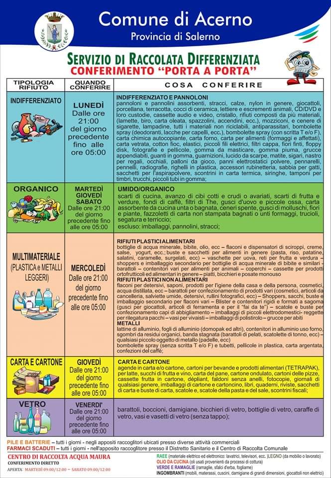 Il relativo manifesto, distribuito anche in tutte le case è multicolore e ricco di spiegazioni su cosa può essere “conferito” in quel determinato giorno.