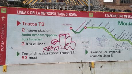 Vedremo le prossime, ma non tanto presto. La “talpa” di scavo è stata da poco attivata vicino al mercato di via Sannio e, vicino al Colosseo c’è questo cartello inequivocabile: per costruire le due prossime stazioni, e relative gallerie, sono stati previsti ben 83 mesi, circa 7 anni. Ricordo che il Colosseo fu costruito in otto anni.