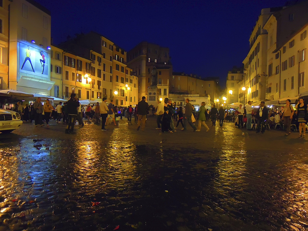 una normale notte a Campo de’ Fiori a Roma