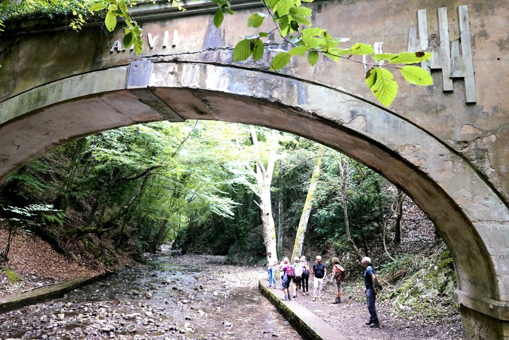 Vicino alla chiusa si trova un ponte, costruito chiaramente durante il ventennio fascista, come si vede chiaramente dai fasci littori ai lati e dalla scritta A. XVII (ossia anno 17° dell’era fascista)